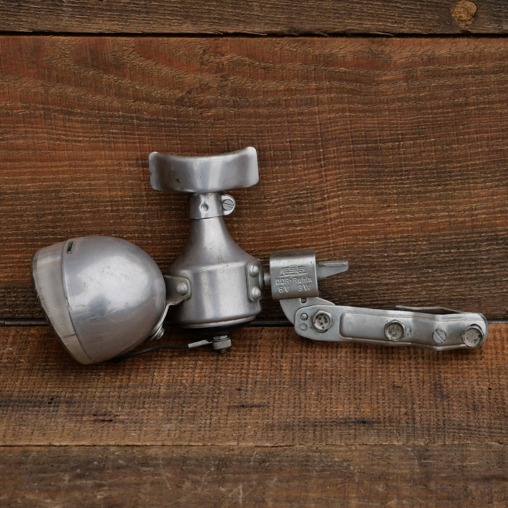 Lichtanlage RULA, Dynamo-Scheinwerfer Kombinationen, DDR, orig. 70er/80er J., Durchmesser Scheinwerfer ca. 6cm, Höhe Dynamo ca. 9cm, Anbau links, 6V/3W, Alu, für Halbrenner, Randonneure, Sporträder etc., alte Neuware mit Lagerungsspuren, Funktion gepr