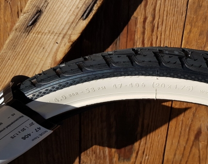 Fahrrad Reifen "CONTINENTAL", 20 x 1.75 (47-406), Weisswand, klassische Ausführung, ideal für Klappräder und als Bonanza Vorderreifen