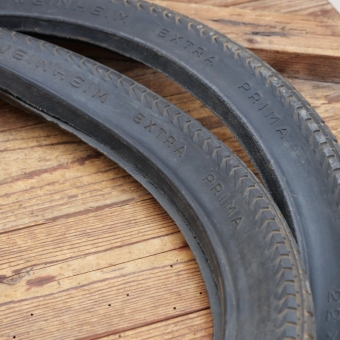 Reifensatz Fahrrad, WEINHEIM Extra Prima, Wulst, 22 x 1 3/4, original 30er-50er J., schwarz, alte Neuware mit
