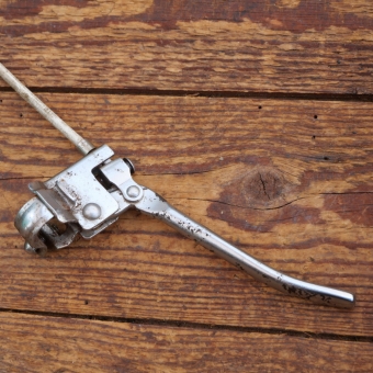 Stempelbremse BÜCHEL mit Seilzug u. Hebel, orig. 50er J., vernickelt, Bremsfuß verzinkt ca. 46 x 35mm,