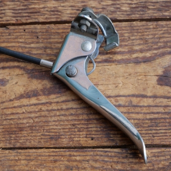 Stempelbremse REICH mit Seilzug u. Hebel, orig. 50er J., verchromt, Bremsfuß ca. 46 x 33mm, Bremshülle ca.