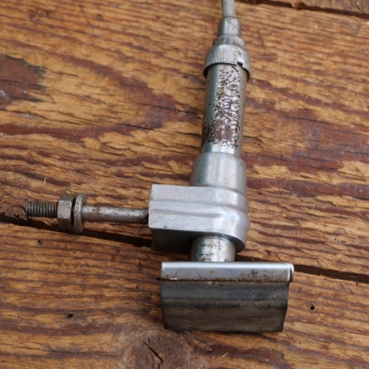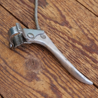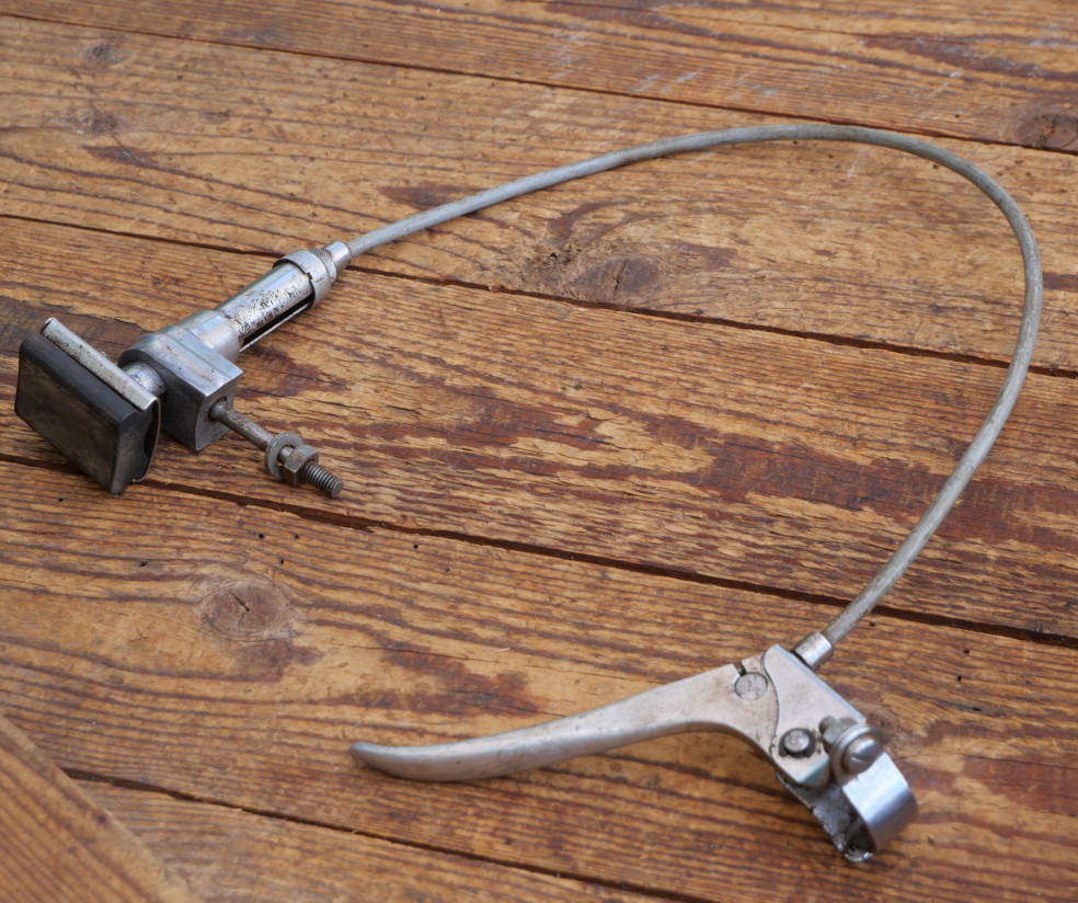 Stempelbremse mit Seilzug u. Hebel, orig. 50er J., verchromt/Alu, kleiner Bremsfuß ca. 41 x 31mm,