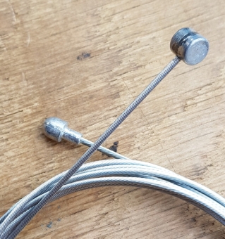 Bremszug Innenzug, mit BEIDSEITIG Standard Birnen- u. Walzennippel, Stahlseil, D=1.5mm, L=205 mm. Universell einsetzbar an Bremsgriffen,- den nicht passenden Nippel einfach abschneiden