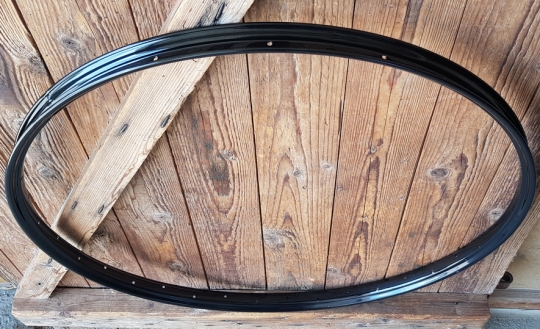 Fahrradfelge f. Drahtbereif. 28" x 1 1/2 (635)!!, klassisches Ideal Profil, Stahl, schwarz lack., 36 Loch, NOS für Waffenräder etc., Linierungen sind auf Wunsch und gegen Berechnung möglich. Bei Interesse bitte anfragen.