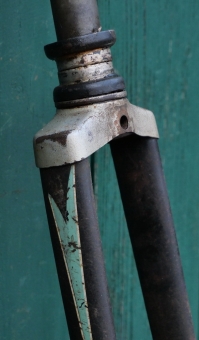 Fahrradgabel 26 Zoll OPEL, schwarz, für Ballonrad 30er J., inkl. orig. Steuersatz verchromt, gebr.