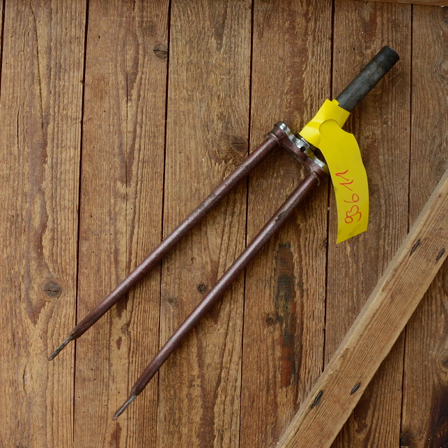 Gabel 26" orig. 60er J. unrestauriert, Schaftlänge 163 mm, Scheidenlänge 365 mm, Weite oben 56 mm, Zustand siehe Bilder
