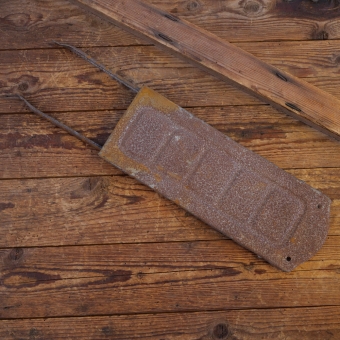 Gepäckträger, Prägeblech, ca. 34 x 13cm, silber, orig. 20er/30er Jahre, gebr.