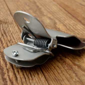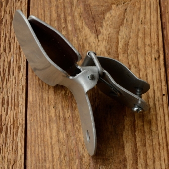 Klemmhalter f. Tennisschläger, Spaten, Schirm, Stock o.ä., silber lackiert, zur Gabelmontage, neu aufgelegt nach 30-50er Jahre Muster