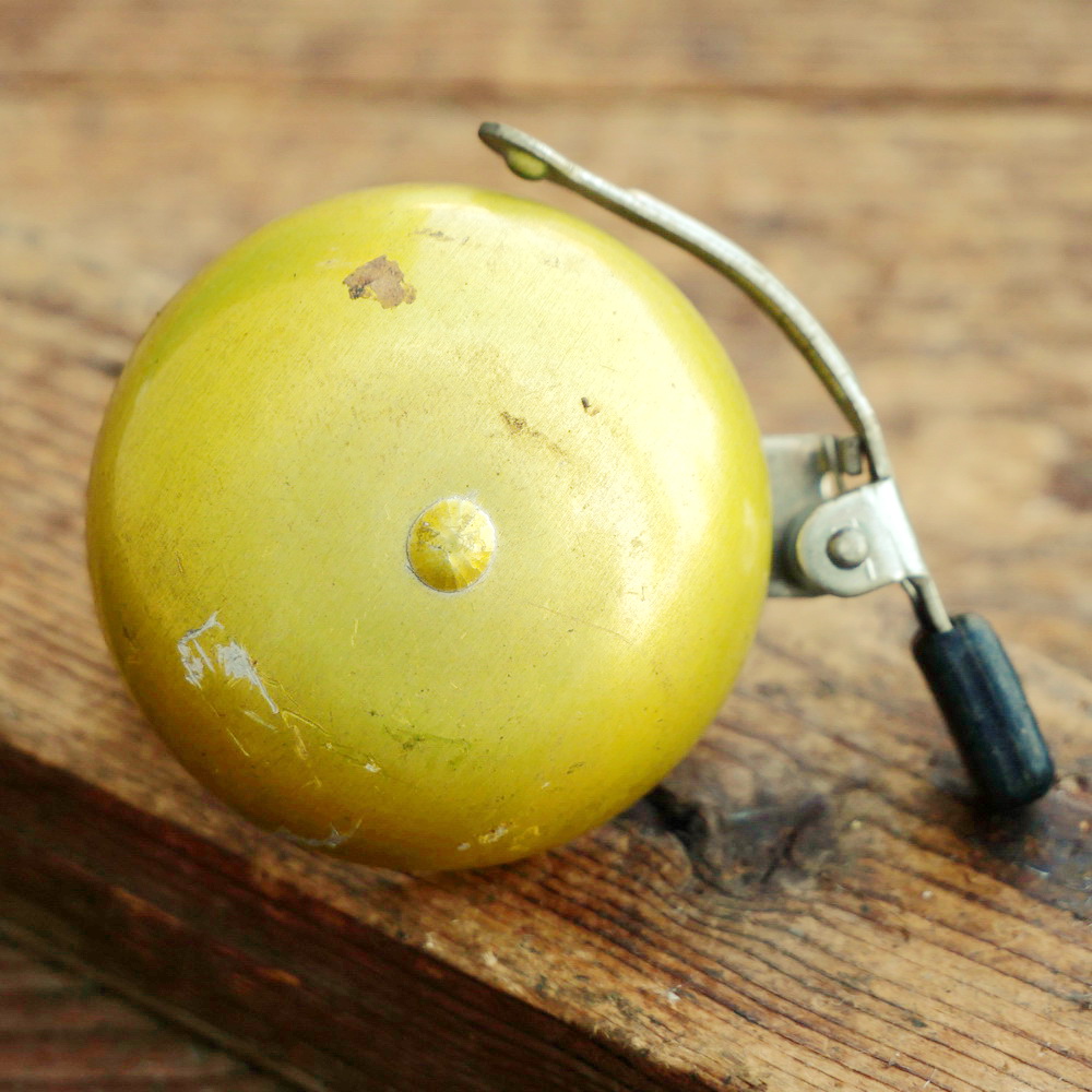 Fahrrad Klingel REICH, für Rennrad, orig. 70er/80er Jahre, Alu, gelbgrün-metallic, Durchmesser 50 mm, gebraucht, Zustand siehe Bilder.