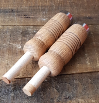Holzgriffe, genutet, hellbraun gebeizt, mit Dübelklemmung, 25mm, 100mm lang, mit Metallzwinge. Sehr hochwertig von Hand gefertigt ! Ideal für Fahrräder von ca.1910 - 1950
