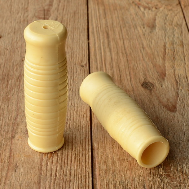 Kunststoffgriff aus Altbestand, altweiß, 22mm Duckmesser, Länge 100 mm. Universell passend für alle Fahrradklassiker ab den 1960er Jahren.