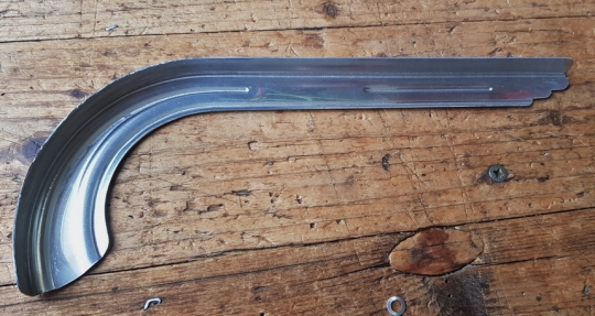 Kettenschutz f. Kinderfahrrad, Aluminium, alte Ausführung, L=29cm, ohne Bandage, NOS