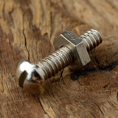 Schraube Rundkopf, Zollgewinde (4.3mm), vernickelt, L=23/20mm, incl. Mutter, Sechskant SW=9mm, orig. Altbestand