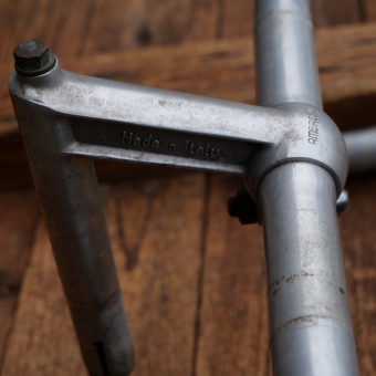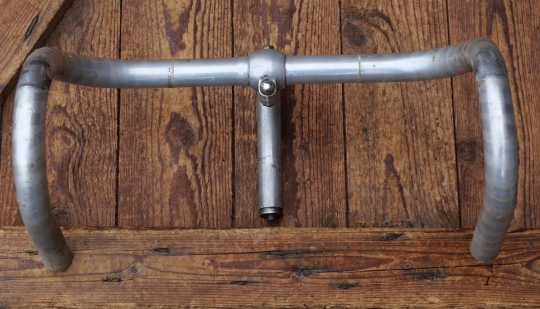 Fahrradlenker, AMBROSIO, original 50er/60er Jahre, Aluminium, für Rennrad, Durchmesser Lenkrohr 24,6 mm, Breite ca. 380 mm, Schaftlänge 110 mm, Vorbaulänge 95 mm, gebraucht mit schöner Patina, Zustand siehe Bilder.
