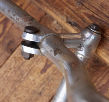 Fahrradlenker FRIKO, original 30er Jahre, verchromt, für Sportrad, Durchmesser Lenkrohr und Schaft 22,2 mm, Breite ca. 570 mm, Schaftlänge ca. 150 mm, gebraucht mit Patina, Zustand siehe Bilder