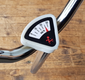 Lenker, Kinderrad 50-70er J. ,NOS, mit Tachoblende, verchromt (leichte Patina) , 22 mm, Breite 53 cm, Gesamthöhe incl. Schaft. . ca. 38 cm. Passend für Kinderräder/Roller mit Außenklemmung zur Lenkerbefestigung, keine Innenklemme!