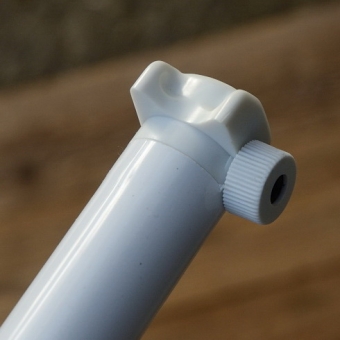 Luftpumpe "SKS", Länge: 385-400 mm , Kunststoff weiss, u.a. passend für Klappfahrrad / Minifahrrad, Sportrad 80er J., rare, alte Neuware !