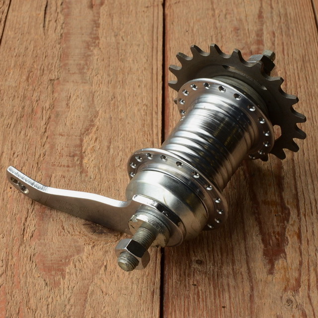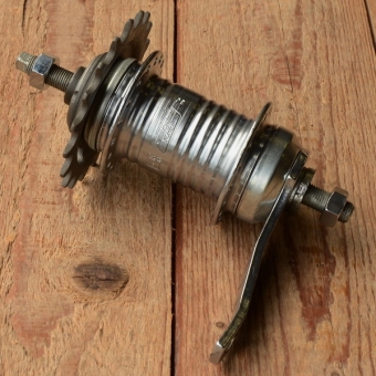 Nabe Hinterrad,"F&S KOMET", verchromt, 60/70er Jahre, Freilauf/Rücktritt, 36Loch, Achse FG9.5mm, Einbaumaß 110mm, mit Ritzel und Muttern