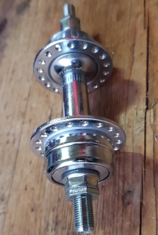 Nabe Hinterrad, UNION (made in germany), Stahl, verchromt, 36Loch, Einbaumaß 120 bis 130 mm, Achse FG9,5 mm, f. Standard-Schraubkranz BSA 1,375"x 24 tpi , NOS . Typische Renn-und Sportradnabe der 70-80er Jahre, NOS !
