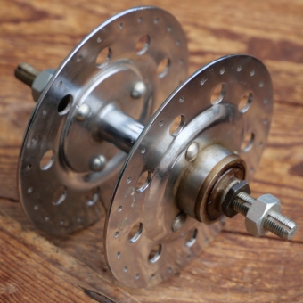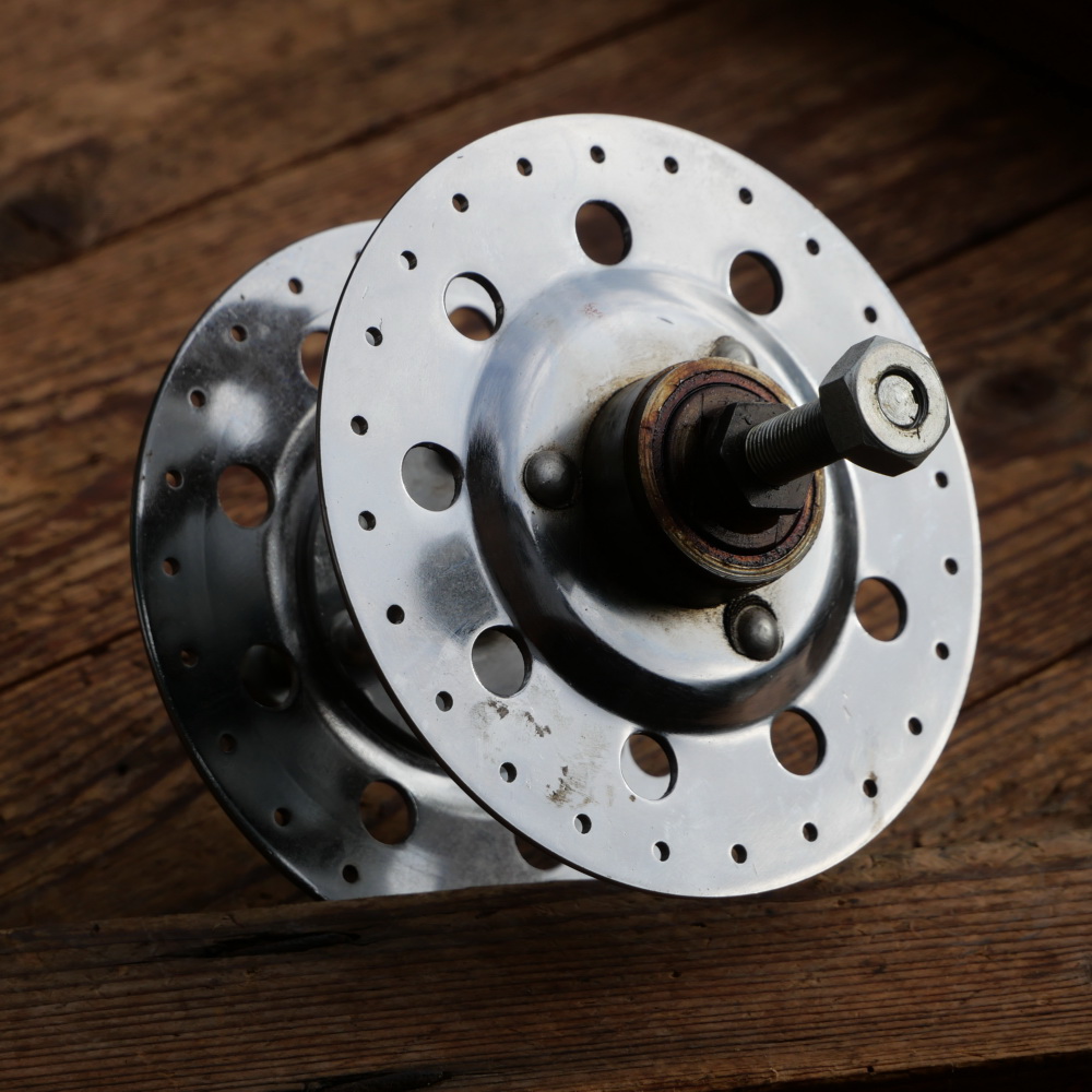 Nabe Vorderrad, Perrin-Lardy Hochflanschnabe, für Radball, verchromt, original 30er-60er Jahre,