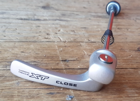 Shimano XT- Schnellspanner für Hinterradnabe, Aluminium, silber (lightweight) , 135 mm Einbau, NOS 80/90er J.