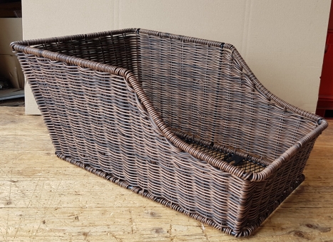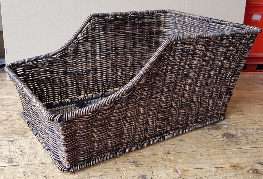 Transportkorb Fahrrad, für Gepäckträgermontage, braun -antik, Maße unten: L/B/H=40x24x22cm. Kommt incl. Montagematerial zur diebstahlsicher/festen Verbindung mit dem Gepäckträger. Sonderpreis !
