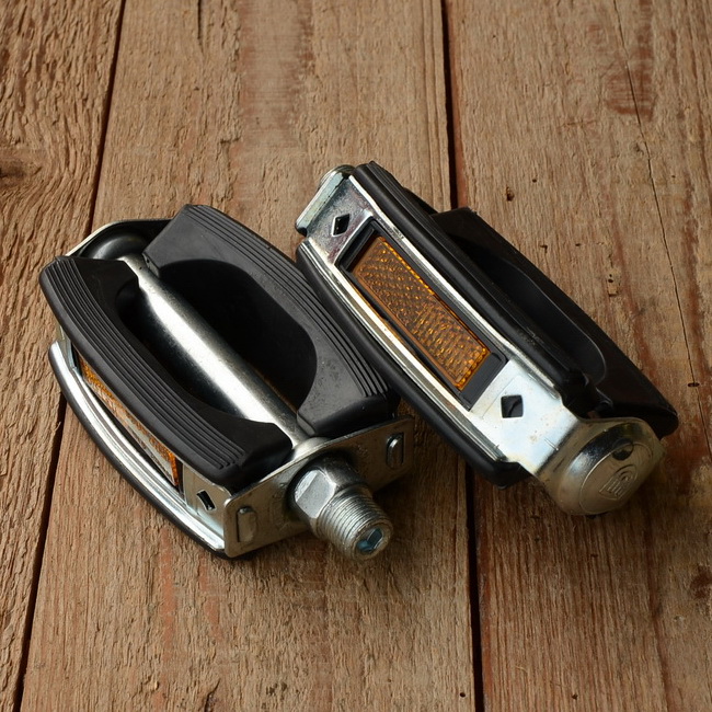 Pedale "Tourensportpedale UNION", schwarz, Blankteile chromatisiert, klassische Ausführung mit Rückstrahlern, auch für Sportmopeds passend, Gewinde 9/16 Zoll (Standardgewinde)