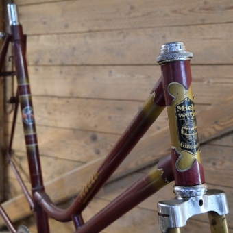 Fahrrad - Damenrahmen sportl. Form "Miele", 1950er J., 28 Zoll, weinroter und goldener Originallack