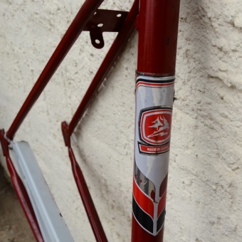 Fahrradrahmen: Seltenes 28 Zoll Klapprad aus russischer Produktion (gefahren in der DDR) , weinrot mit Spezial-Gepäckträger und Schutzblechsatz, 70er Jahre, mit Patina. Rahmenhöhe 56,5 cm. Siehe Bilder.
