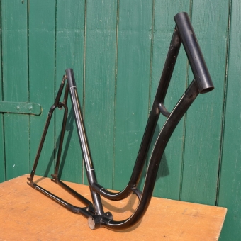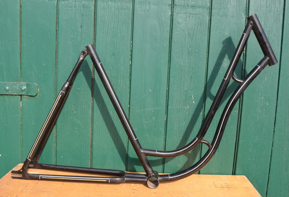 Fahrradrahmen Damenrad 26 Zoll, Fabrikat unbekannt. Vor Jahrzehnten neu lackiert und handliniert, Vorkriegsmodell, Rahmenhöhe 55 cm, Linierung gold-weiß, Sonderpreis!