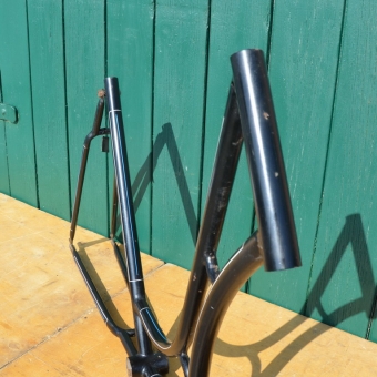 Fahrradrahmen Fabrikant unbekannt, Damenausführung, 28 Zoll, Linierung blau/weiß, 20er Jahre, Rahmenhöhe 56 cm, Rahmennummer 1477XXX.