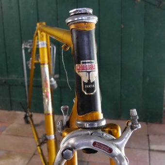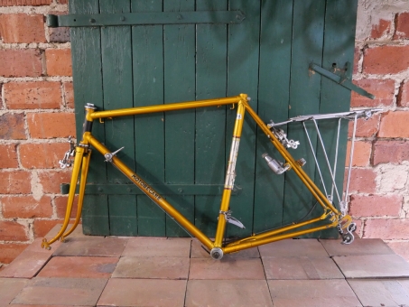 Sportradrahmen (Randonneur) "Motobecane", Herrenausführung, 28 Zoll, Rahmenhöhe 57 cm, Rahmennumer 38XXX, mit Gepäckträger, Tretlager und Kettenblatt, Schutzblechen, Gabel, 60er Jahre,