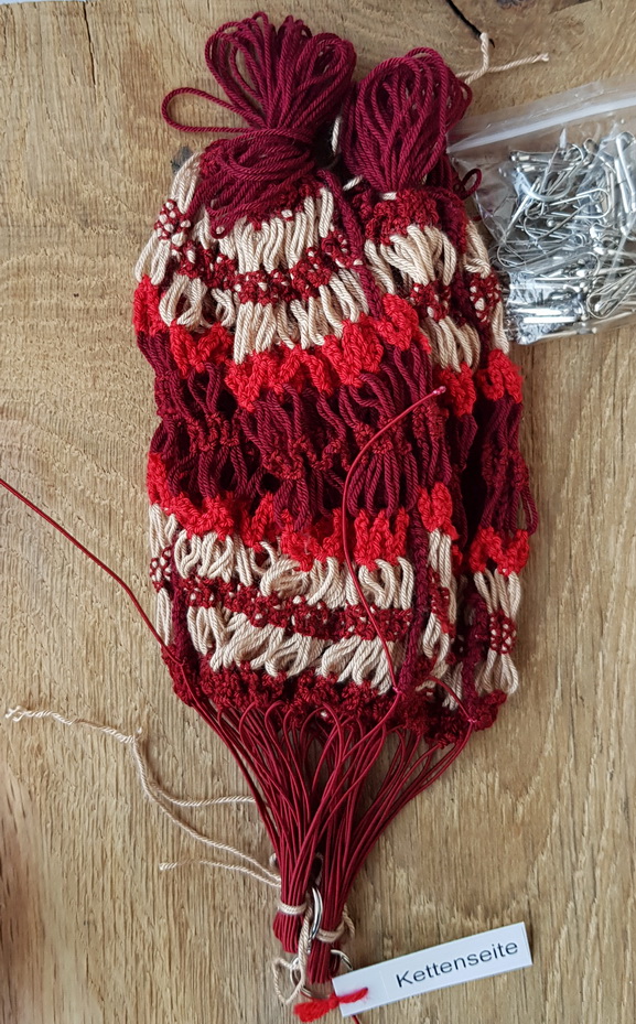 Rocknetz, weinrot/sandbeige/rot, alte Cordwabenausführung, passend für 26"-28" Räder der 20-60er Jahre,