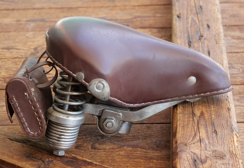 Sattel, Damen, WITTKOP, Kunstleder, rotbraun, verzinkt, original 70er/80er Jahre, Breite ca. 20 cm, Länge ca. 23 cm, inkl. Werkzeugtasche,