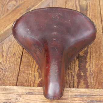 Sattel, Herren, DÜRKOPP/VELEDA, Leder, braun, verchromt, original 50er Jahre, Breite ca. 19 cm, Länge ca. 25 cm, gebraucht mit Patina,