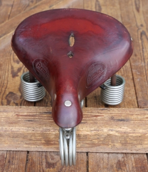 Sattel Herren, LEPPER Primus, Leder rotbraun, Gestell verzinkt, 1980er J., Breite ca. 21 cm, Länge ca. 30 cm, gebraucht