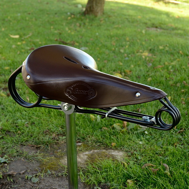 Sattel Lepper "Haarnadel" dunkelbraune Kernlederdecke, schwarze Untergestell, alter LEPPER Stempel im Leder, Kernlederdecke,