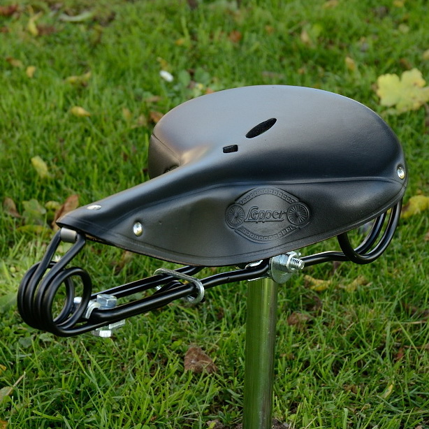 Sattel Lepper "Haarnadel" schwarze Kernlederdecke, schwarze Untergestell, alter LEPPER Stempel im Leder, Kernlederdecke,