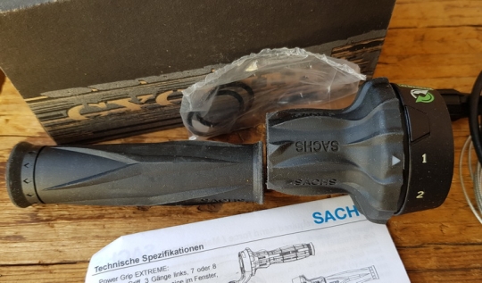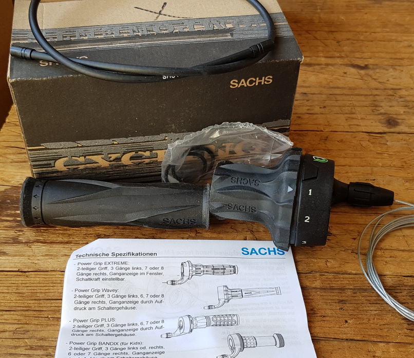 Schalthebel "SACHSPOWER GRIP WAVEY"", linke Seite, 3-Gang, komplett mit allen Teilen in Originalbox! Alte Neuware der 90er Jahre aus Sachs Beständen, kompatibel zu diversen anderen Umwerfertypen (Shimano, Campagnolo). Dazu passend haben wir auch die rechten Drehgriffe mit 6-8 fach Schaltmöglichkeit !