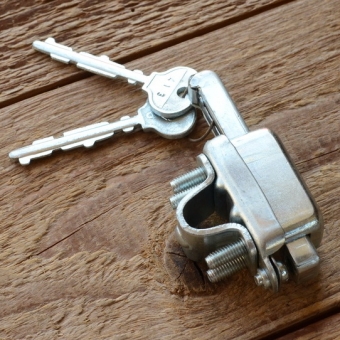 Speichenschloss, "TRELOCK GLORIA" (abgewinkelter Schlüssel) oder "TRELOCK CLOU" (gerader Schlüssel), glanzverzinkt, orig. 60-80er Jahre.