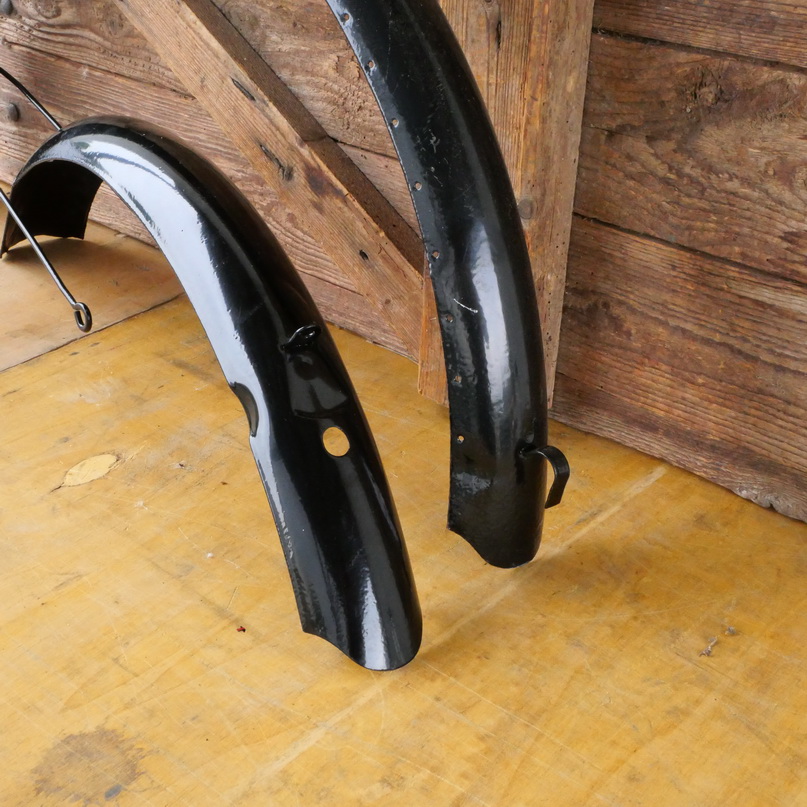 Schutzblechsatz 26 x 2,00, 30er Jahre, neu vom Vorbesitzer pulverbeschichtet, partiell vernarbter Untergrund, Damenausführung, Breite 65 mm