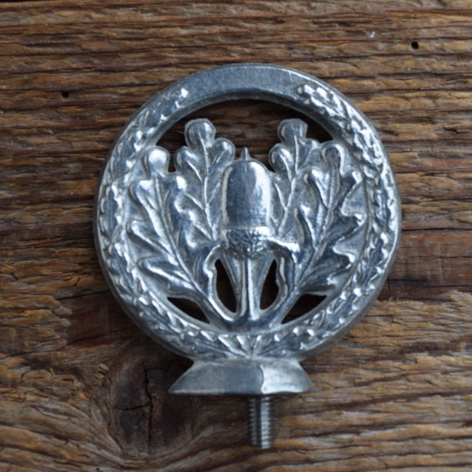Schutzblechfigur EICHENLAUB - passend für jedes Rad, Alu Druckguss, orig. Altbestand 40er Jahre, Zustand siehe Bild