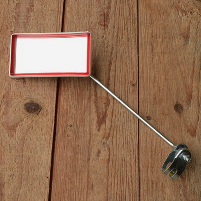 Plastikspiegel, eckig, orig. 70er Jahre, rot, mit Blende in leuchtend bunten