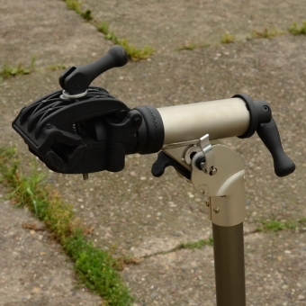 standfest u. stabil, einfach zusammenklappbar, in 30 Sekunden aufgebaut, Klemme 360 Grad drehbar, universell auf Rohrdurchmesser einstellbar,