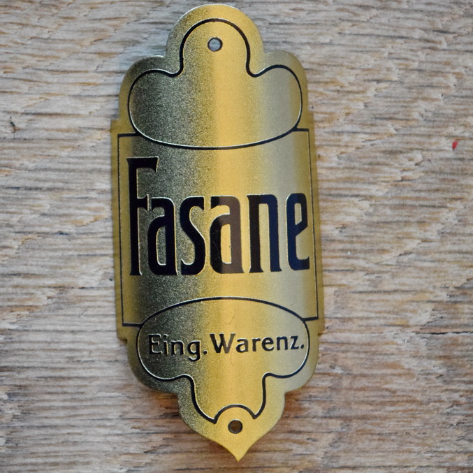 Steuerkopfschild FASANE, 50er Jahre, Originalschild aus Sammlungsbestand, Lochabstand 58 mm