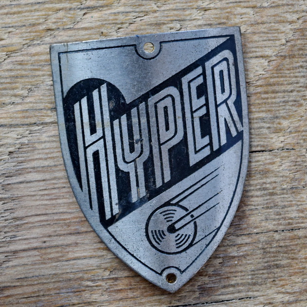 Steuerkopfschild HYPER, 30er Jahre, Originalschild aus Sammlungsbestand, Lochabstand 47 mm Ideal für den passenden Fahrradoldtimer oder die Sammlervitrine. Zustand siehe Bild.