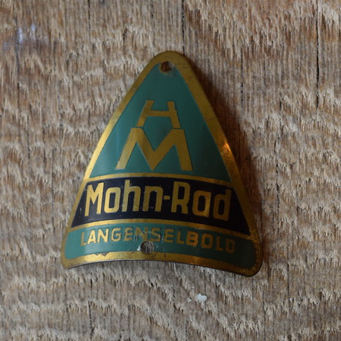 Steuerkopfschild Mohn-Rad, 20-30er Jahre, Originalschild aus Sammlungsbestand, Lochabstand 42 mm