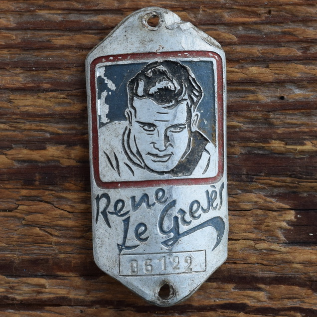 Steuerkopfschild RENE LE GREJÈS, 40-50er Jahre, Originalschild aus Sammlungsbestand