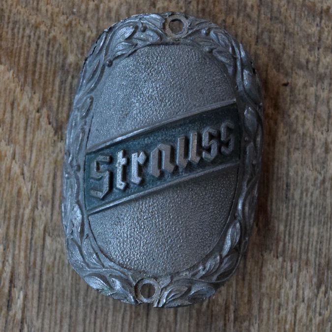 Steuerkopfschild STRAUSS, 50er Jahre, Originalschild aus Sammlungsbestand, Lochabstand 48 mm