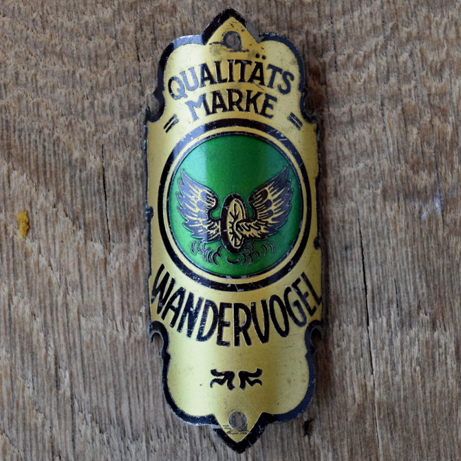 Steuerkopfschild WANDERVOGEL, 20er Jahre, Originalschild aus Sammlungsbestand, Lochabstand 75 mm